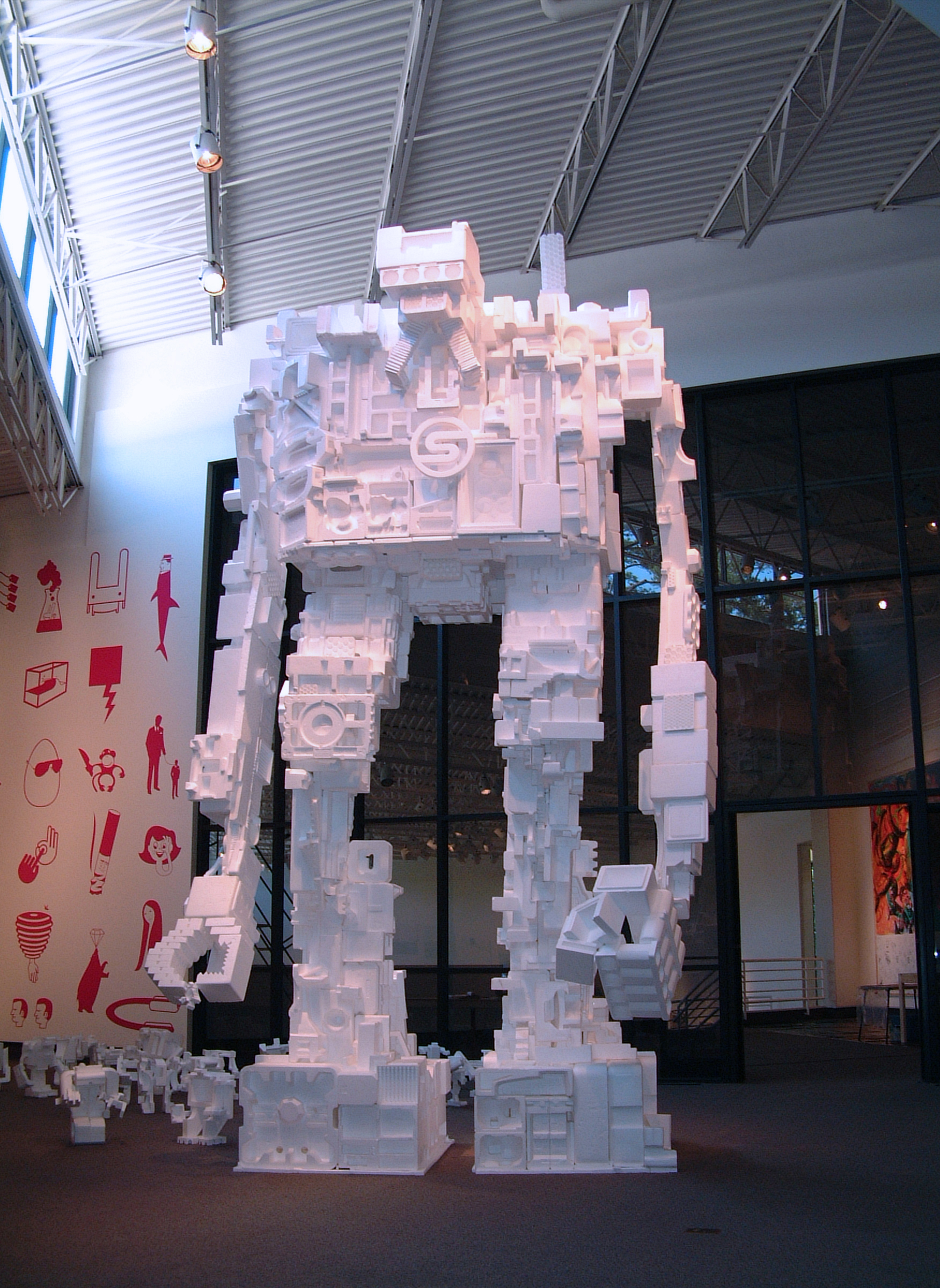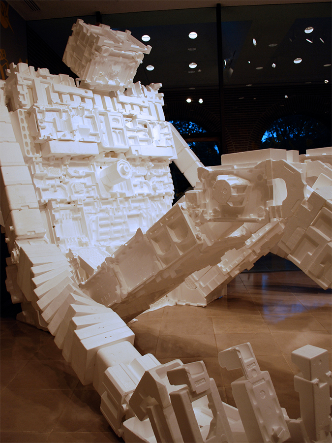 Es entstehen überdimensionale „Styrobots“ aus gebrauchten Styropor®-Verpackungen. Der amerikanische Künstler Michael Salter erschafft aus dem benutzten Verpackungsmaterial faszinierende Statuen und hat mittlerweile Kooperationen mit ganzen Städten aufgebaut, um an sein Material zu kommen.